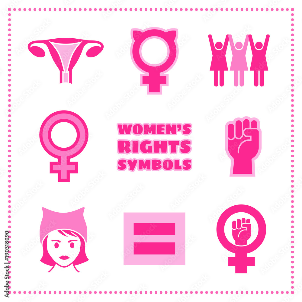 Set Of Vector Feminist Symbols Including Female Symbols Equality Sign Pussy Hat And Raised Fist Stock Vector Adobe Stock